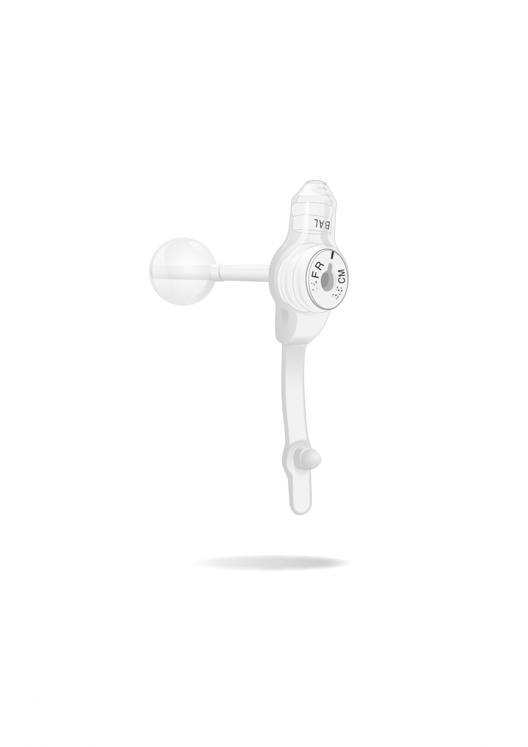 Sagutės formos skaidrus silikono zondas, skirtas maitinimui į skrandį. Labai maža išorinė fiksavimo plokštelė. Įstatomas per esamą stomą be pakartotinės endoskopijos. Fiksuojama vidiniu balionėliu, užpildytu 5 ml sterilaus vandens. Patogus stomos ir sagutės valymas ir priežiūra. Geriausias kosmetinis sprendimas. Pagerinta paciento judėjimo laisvė.